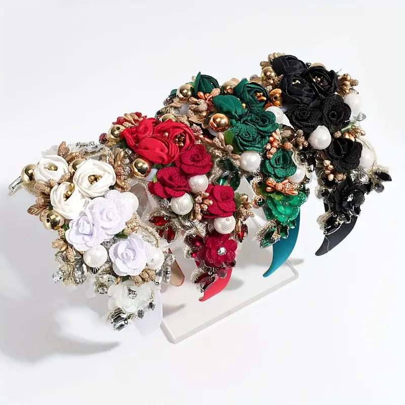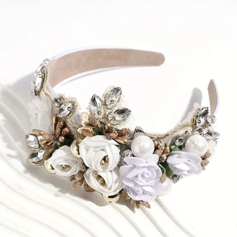 Baroque Large Flower Rhinestone Headband Faux Pearl Head Jewelry Hair Accessories For Women
