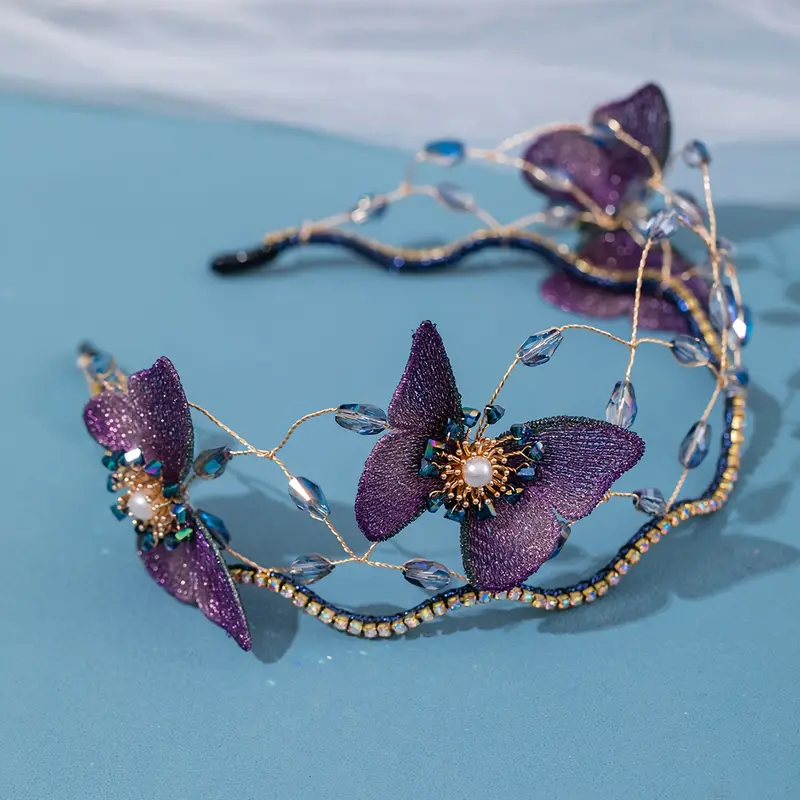 Elegant Floral headband – Deep Purple with Sparkling accents
